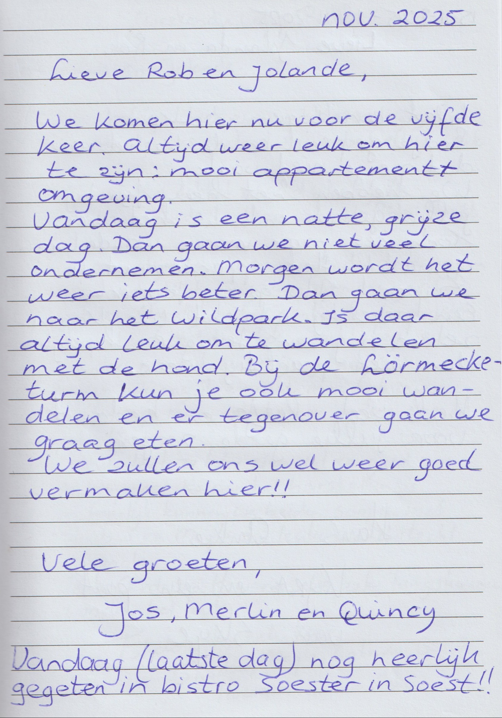 - Jullie tussen 1 januari en 31 december 2026 betalende gast bij ons zijn.