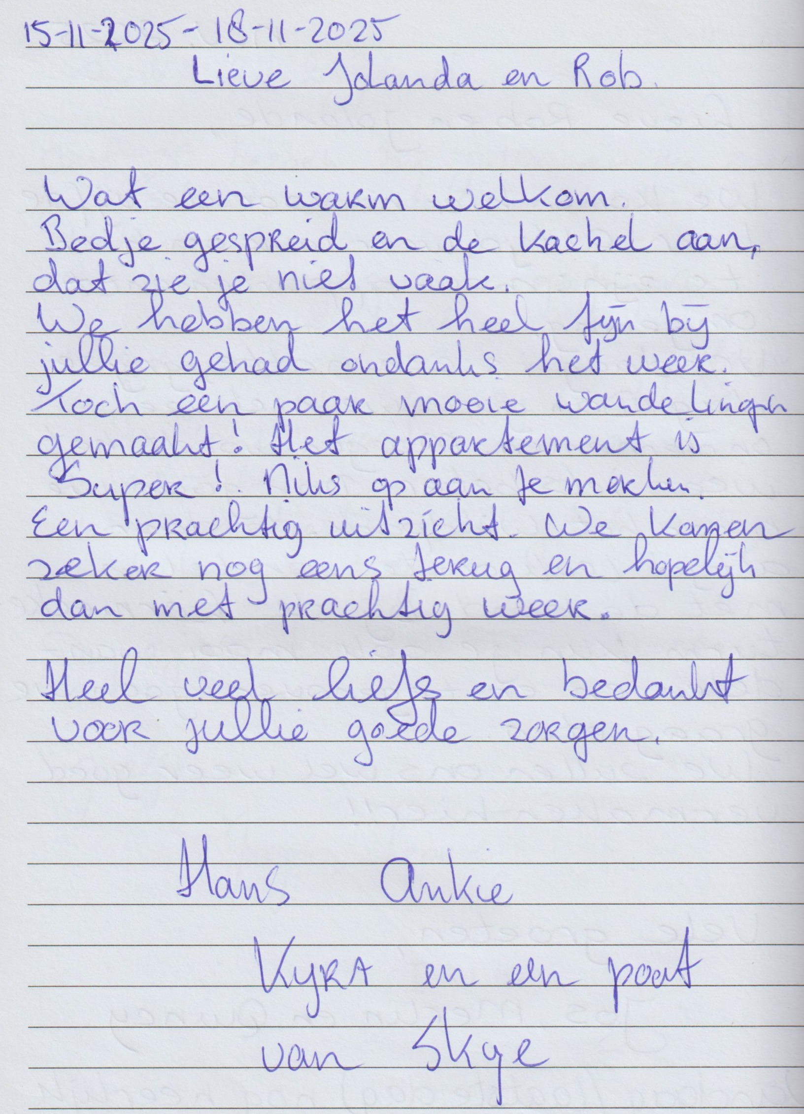 - Verblijven jullie meerdere periodes in 2026 bij ons dan zal er toch maar één lot met jullie naam erop mee in de schaal voor de trekking verdwijnen. Iedereen die gast bij ons is geweest maakt dus even veel kans op het gratis weekend.